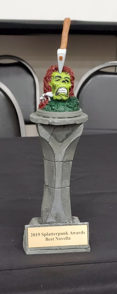 And then Saturday happened. I had been waiting for last Saturday for a very long time, at least since the Splatterpunk Awards were first created back in 2018. I’m so grateful that we in the horror genre finally have an award that celebrates extreme and splatterpunk horror, two sub categories that are mostly looked over by the mainstream. After seeing those awards in person last year at KillerCon in Austin, I knew I had to have one eventually. My wife, Katie, who is the wonderful host of the Make Me Read Your Book Podcast, was used as the statue presenter at the ceremony last year, and she let me see the award up close. But I refused to touch it, just like NHL players and fans to do the Stanley Cup before their teams win it all. I was incredibly fortunate and grateful to have not one, but two nominations this year for both ONE FOR THE ROAD in the novella category and RESISTING MADNESS in the collection category. I never honestly thought I would win either, my mind already picking who I thought was going to take them. If anyone was actually watching the ceremony online, my reaction was absolutely genuine. I was completely shocked, and to be honest I still am. I’m grateful to everyone who nominated my work and to the judges for choosing my werid little novella. If you weren’t able to watch, here’s a copy of my speech I read (stuttered and cried through) below: